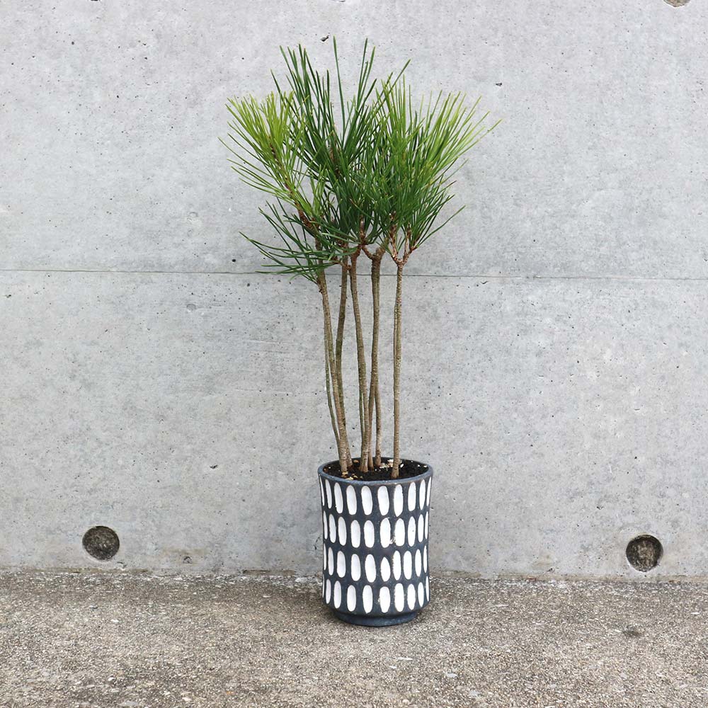 黒松ブッシュ小盆栽【庭木 9cmオシャレ陶器鉢(白黒縦長水玉鉢)/1個売り】
