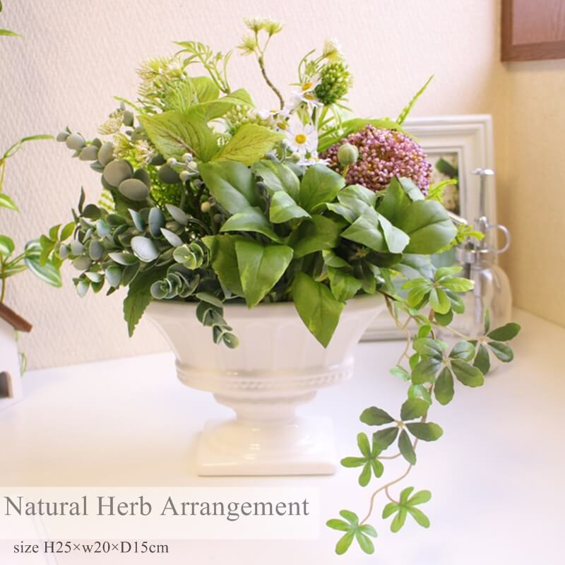 送料無料/インテリア/グリーン/白 花器/ハーブ/造花/アレンジメント/お花/アートフラワー/フェイクグリーン