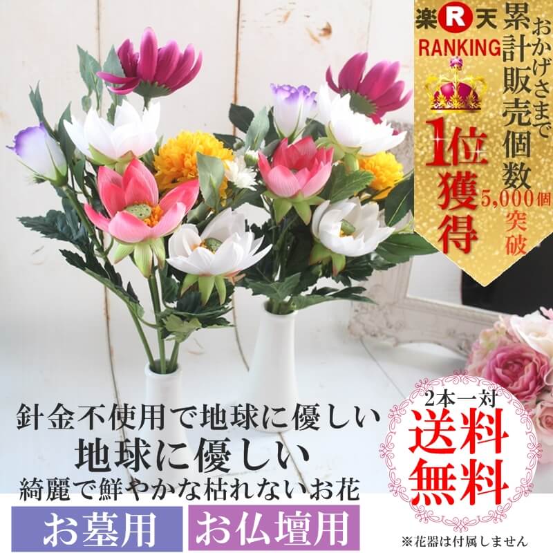 送料無料 対 2本組 良質 お供え花 仏花 綺麗 衛生的 お手入れ不要 経済的 お仏壇用 お墓にも お供え お盆 お彼岸 花 造花...