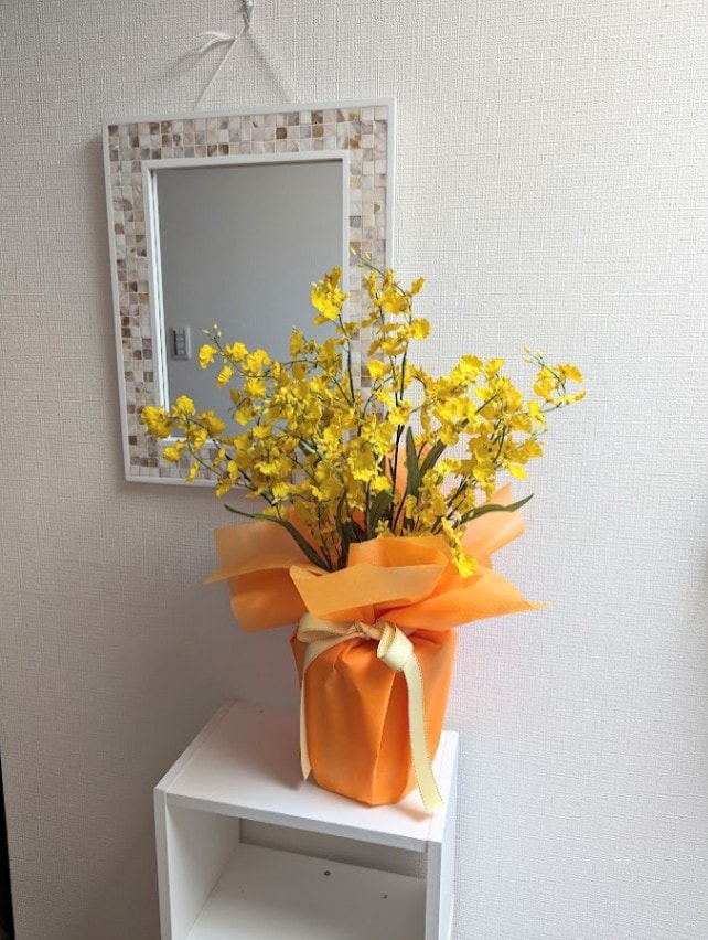 造花 オンシジュームポットアレンジ アレンジフラワー 触媒加工品 黄色は風水カラー 母の日ギフト 新築お祝い 送料無料