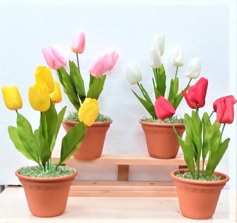 【造花チューリップポット4点セット】【チューリップポット】【送料無料】店舗デイスプレイに お部屋のアクセサリーに 大量受注可