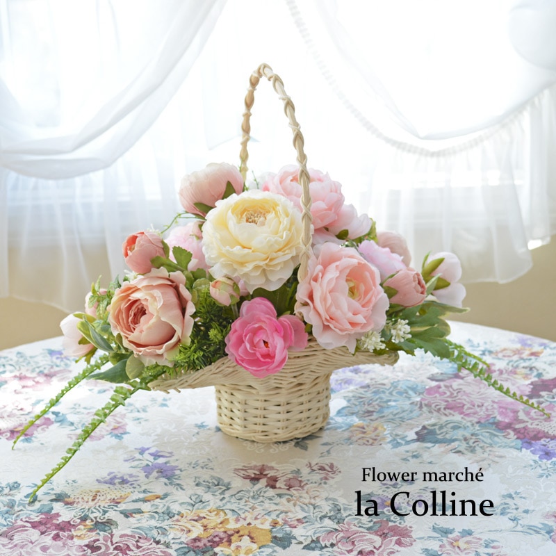 スイートラナンキュラスのバスケット【アーティフィシャルフラワー(高級造花)アレンジ】