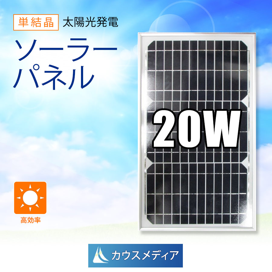 20W ソーラーパネル 単結晶 アルミフレーム 太陽光パネル 12V 発電 システム バッテリー充電 KAUSMEDIA