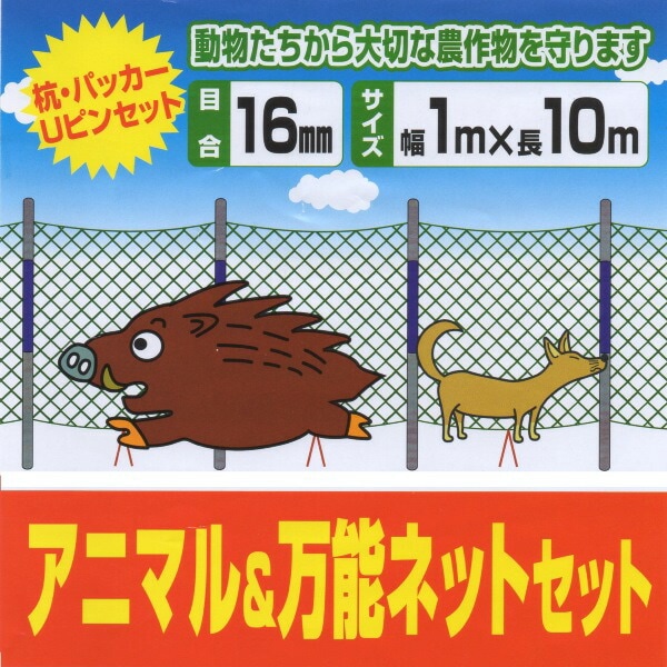 アニマル&万能ネットセット 1m×10m 1セット ネット+支柱 侵入防止 畑囲い 防獣ネット シンセイ