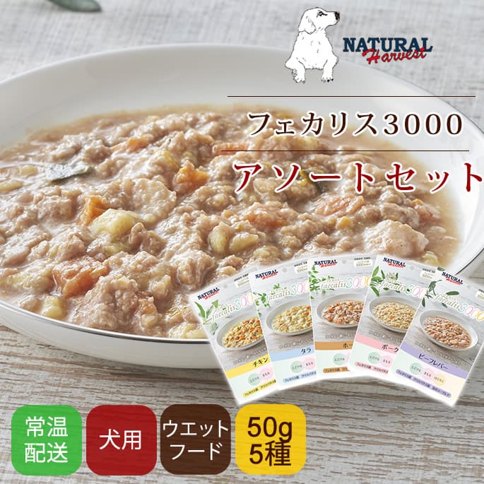 犬用総合栄養食 ナチュラルハーベスト フェカリス3000 5つの味アソートセット(50g×5袋) バラエティセット