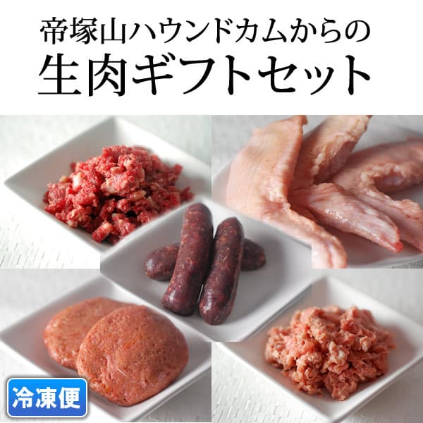 春・夏限定|犬用 生肉お得ギフトセット|食欲モリモリ!生食セット 馬肉・エゾ鹿肉・手羽先・ウインナー【冷凍クール便】