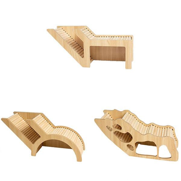 小動物用 スロープ はしご ステップ 17×18.5cm 木製 安全 波型 ウェーブデザイン 上り下りしやすい おもちゃ 遊び場 ...