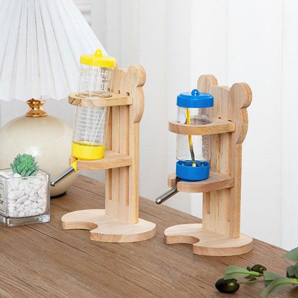 小動物用 水飲みスタンド 木製 ウォーターボトル付き 80ml ボトルホルダー 水飲み器 自動給水器 ハムスター モルモット モモ...
