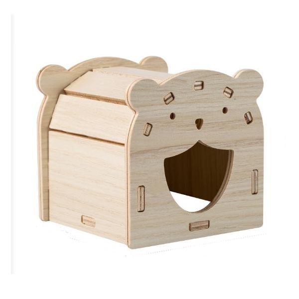 小動物用 ハウス 木製 10×10×10cm くま かわいい 組み立て簡単 安全 丈夫 底なし お手入れ簡単 コンパクト ハムスタ...
