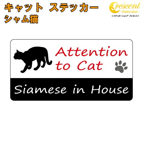 シャム猫 イン ハウス ステッカー 【猫 cat in house キャット シール 防犯 siamese】【文字変更可】