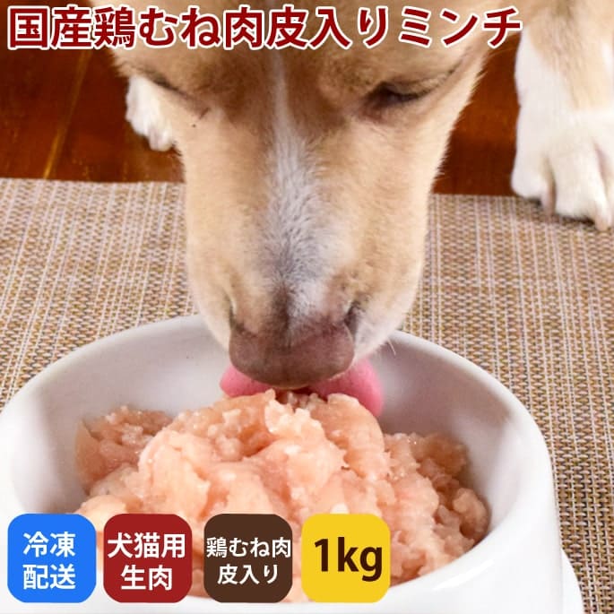 【タイムセール5%OFF】犬猫用 生肉|国産鶏 むね肉皮入りミンチ 1kg【新鮮な鶏ミンチ】冷凍配送 鶏皮【2025ts_g21...