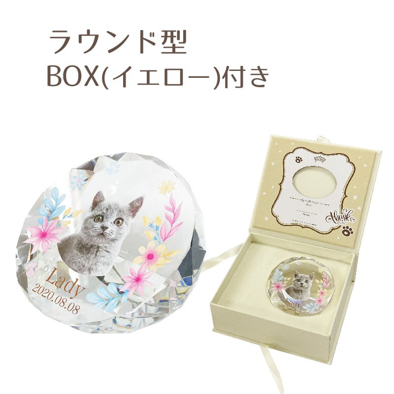デザインクリスタル位牌(ラウンド) BOXイエロー付