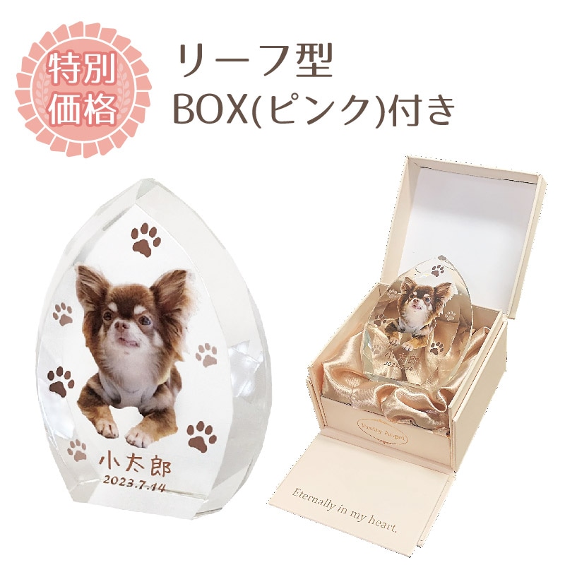 デザインクリスタル位牌(リーフ) BOXピンク付