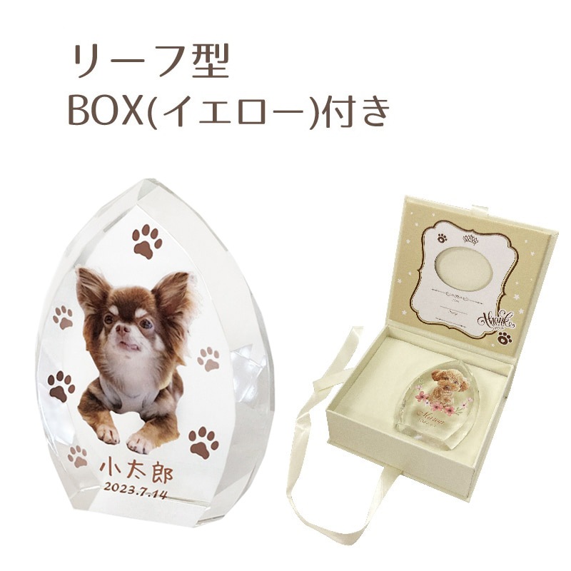 デザインクリスタル位牌(リーフ) BOXイエロー付