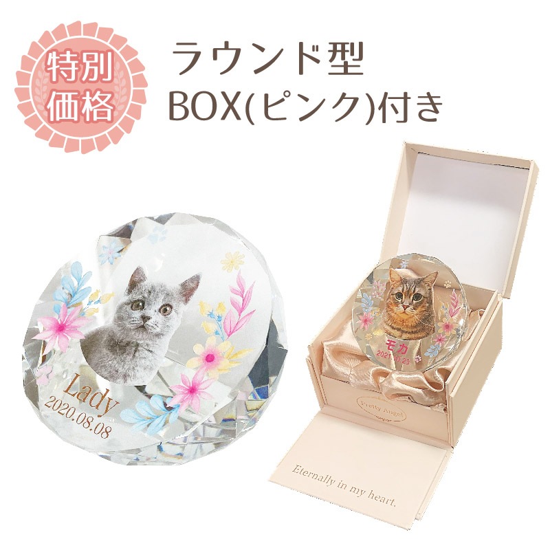 デザインクリスタル位牌(ラウンド) BOXピンク付