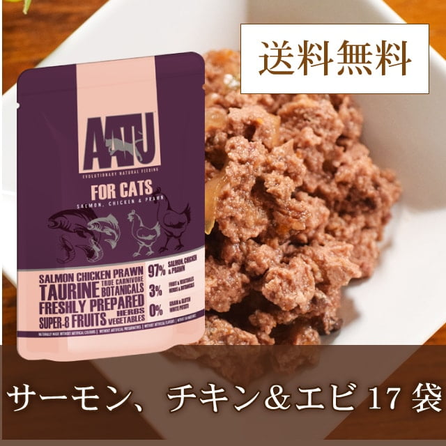 AATU アートゥー|キャット サーモン、チキン&エビ 85g17袋セット ウェットフード【総合栄養食】