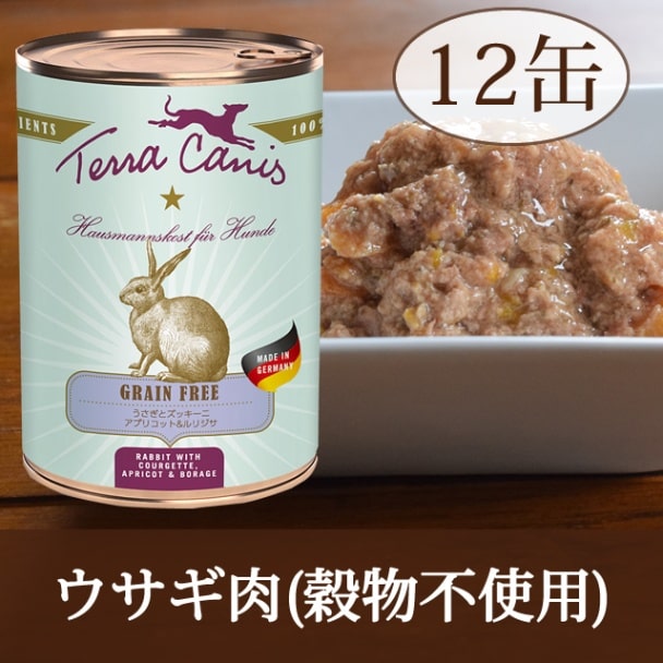 テラカニス グレインフリー うさぎとズッキーニ アプリコット&ルリジサ 400g 12缶セット おまけつき 成犬用コンプリート食