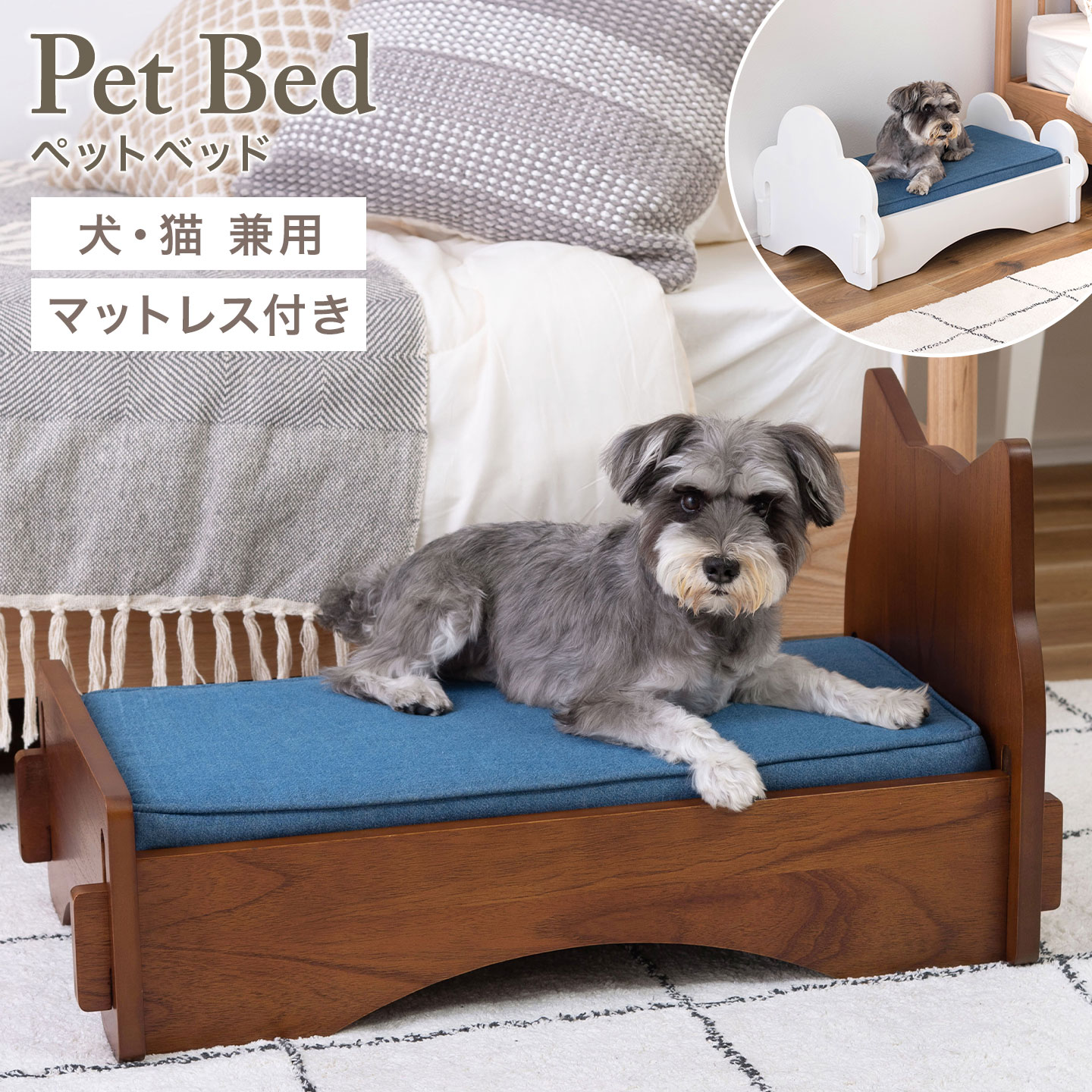 ペットベッド ペット用 犬 猫 ベッド ドッグ キャット PET-69 天然木 コットン マットレス付き デニム生地 マット すの...