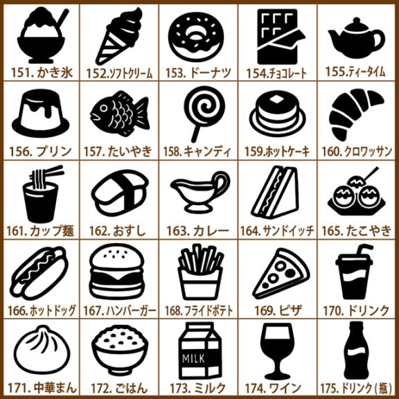 手帳・カレンダー用 スタンプ 3サイズ 全25種類 (食べ物)