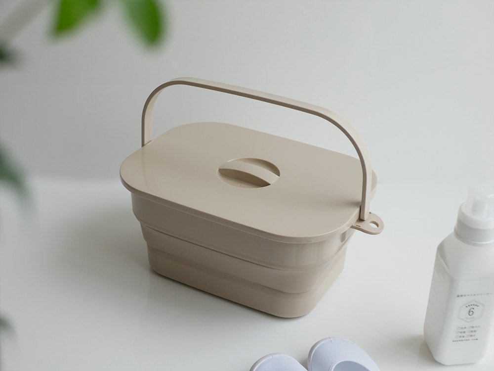 【ISETO/イセトー】折りたためるつけ置き洗いバケツ 7L / ベージュ