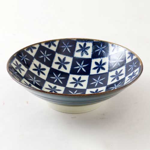 【半額・在庫処分】大鉢 おふけ花市松8.0めん鉢 (MB) Large bowl of pottery ※在庫限り