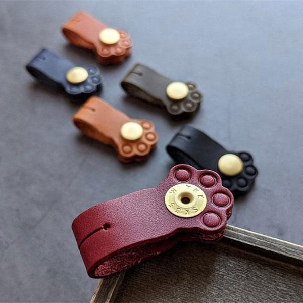 ケーブルホルダー 猫 ネコ 肉球 レザー調 PUレザー イヤホン USB コード 整理 収納 ボタンクリップホルダー ケーブルクリ...