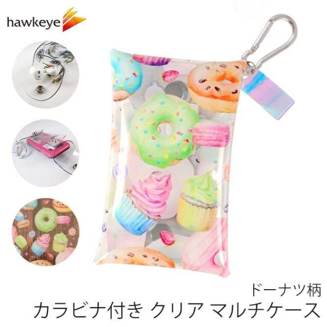 【ドーナツ柄】クリア マルチケース カラビナ付き 名刺サイズ ドーナツ柄|収納 ケース 柔らか 水洗い 丸洗い 洗える 清潔 ビニ...