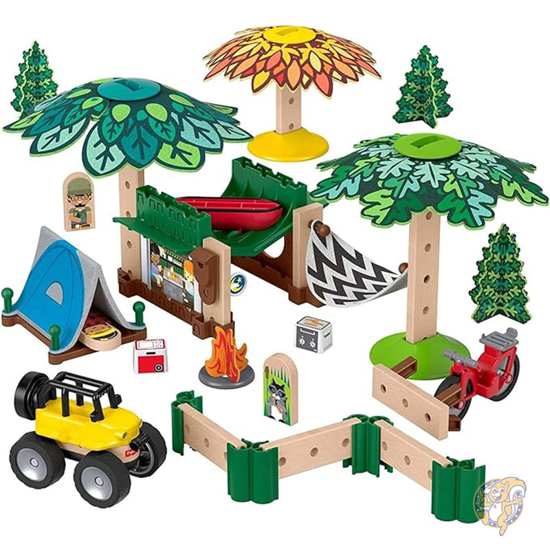 ワンダーメーカーズ デザインシステム ソフトスランバー キャンプ場 60 ピース以上の組み立てと木製トラックのプレイセット おも...