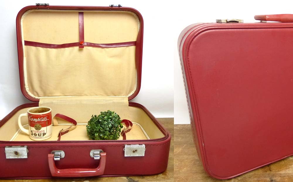 古道具 ヴィンテージ トランク / スーツケース ( エンジ )昭和レトロ【中古】