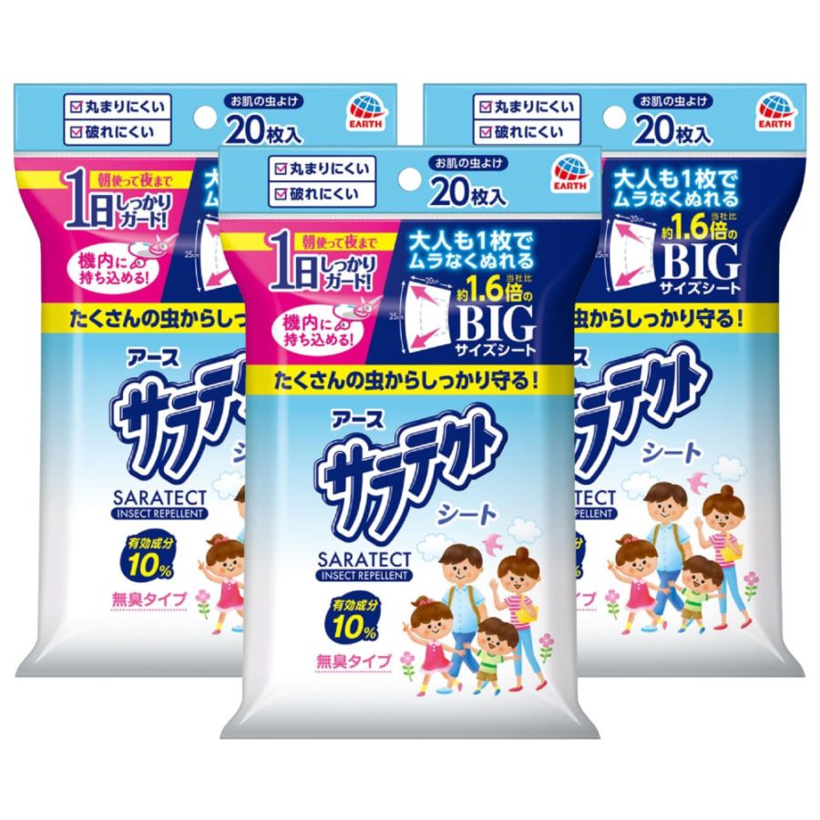アース製薬 サラテクト シート 20枚入×3個 【防除用医薬部外品】虫除け ビッグサイズ 海外旅行 無臭