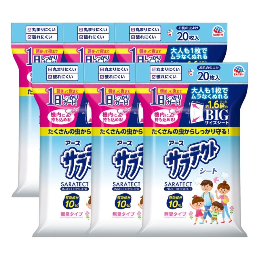 アース製薬 サラテクト シート 20枚入×6個 【防除用医薬部外品】虫除け ビッグサイズ 海外旅行 無臭