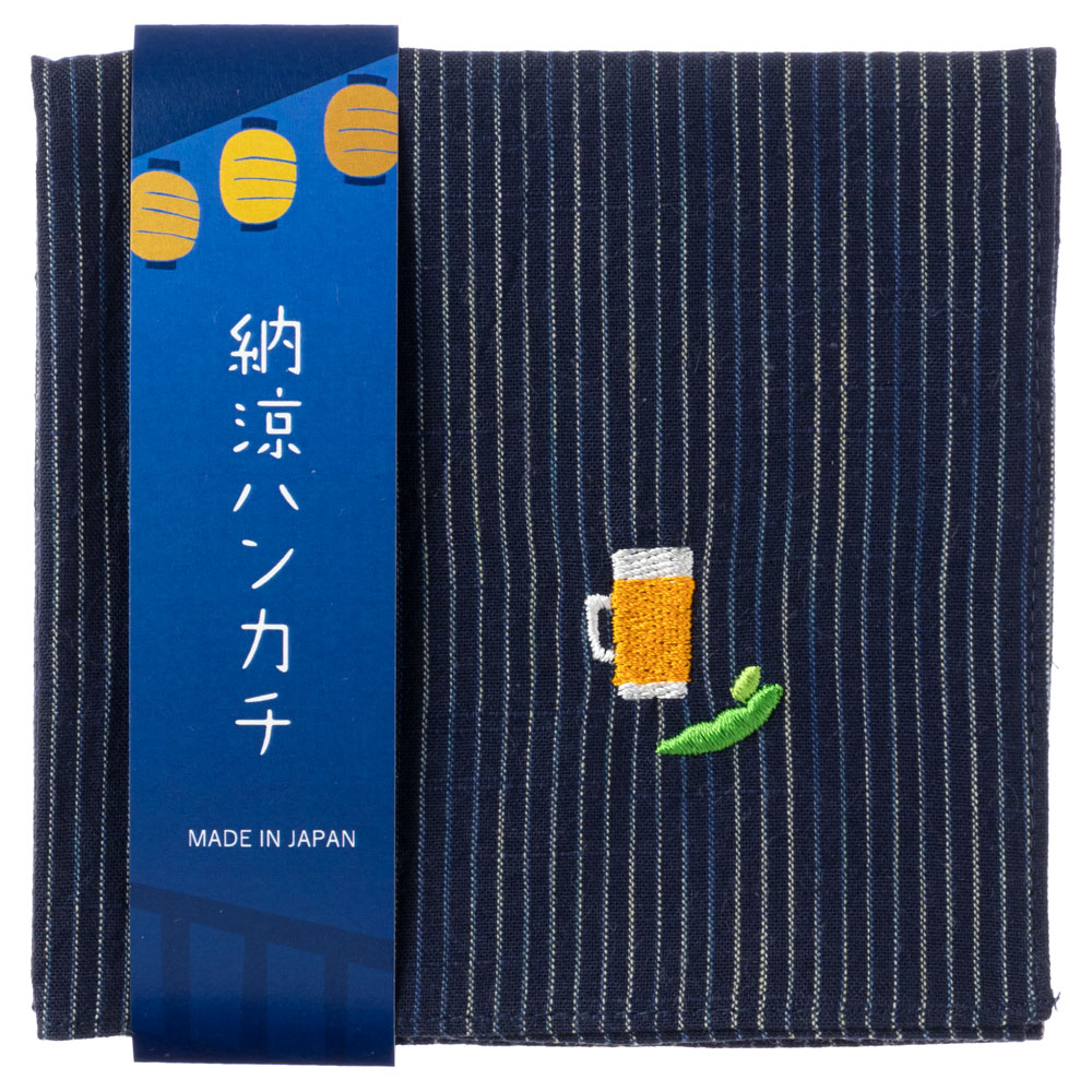 納涼ハンカチ 枝豆ビール 刺繍入りガーゼハンカチ スーベニール Japanese pattern embroidered gauz...