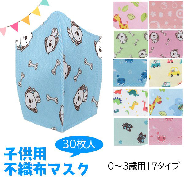 【即納】子供用 不織布マスク 30枚入り 使い捨て キャラクター カラフル 3D 立体構造 花粉 ウィルス ハウスダスト 対策 飛...