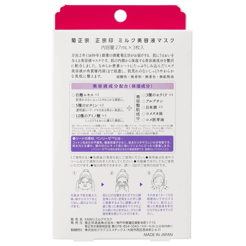 正宗印 ミルク美容液マスク フェイスマスク 3枚入り 菊正宗 パック 日本製 美容成分 自宅エステ シートマスク