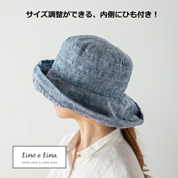 ハット マノン フラックス W12 リーノエリーナ Lino e Lina 内側ひも付き レディース 女性 無地 リネンハット 帽...