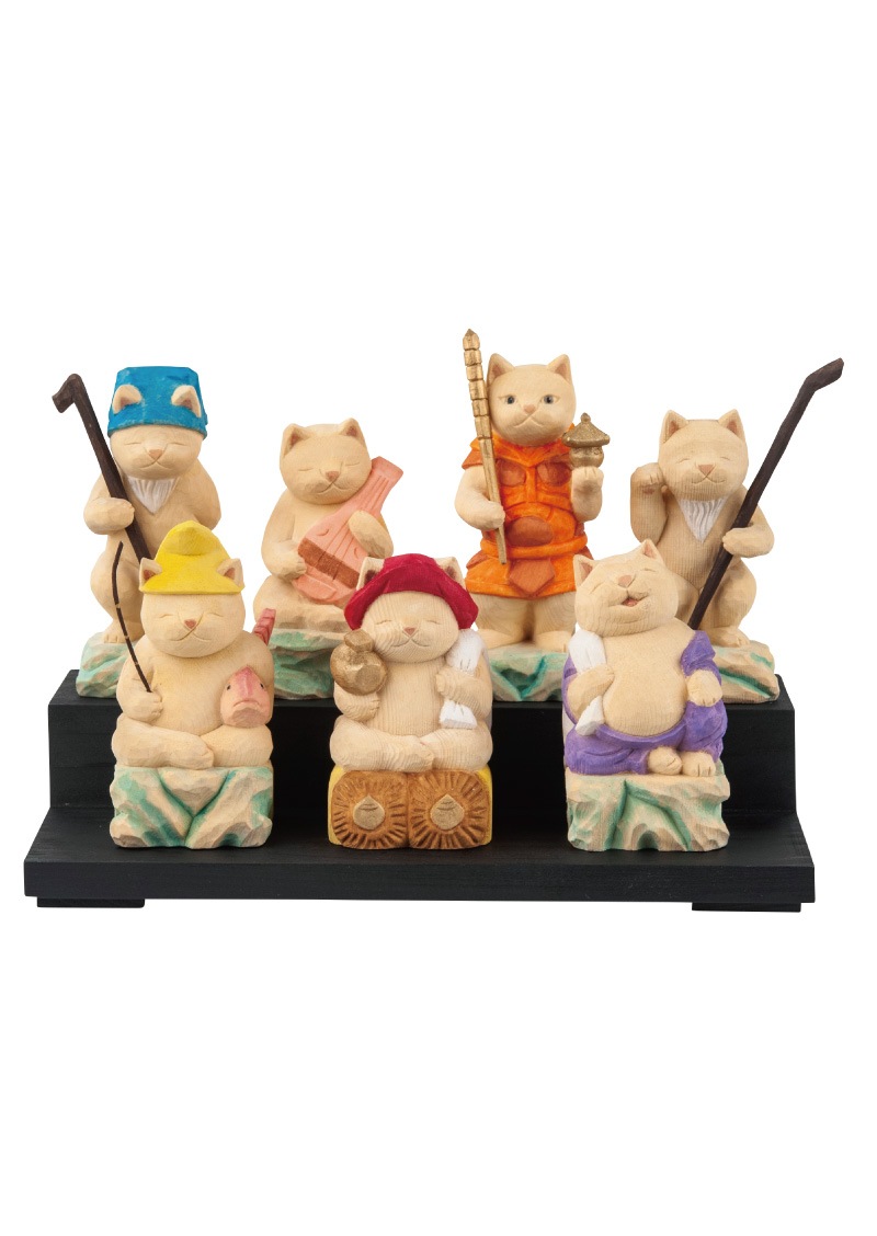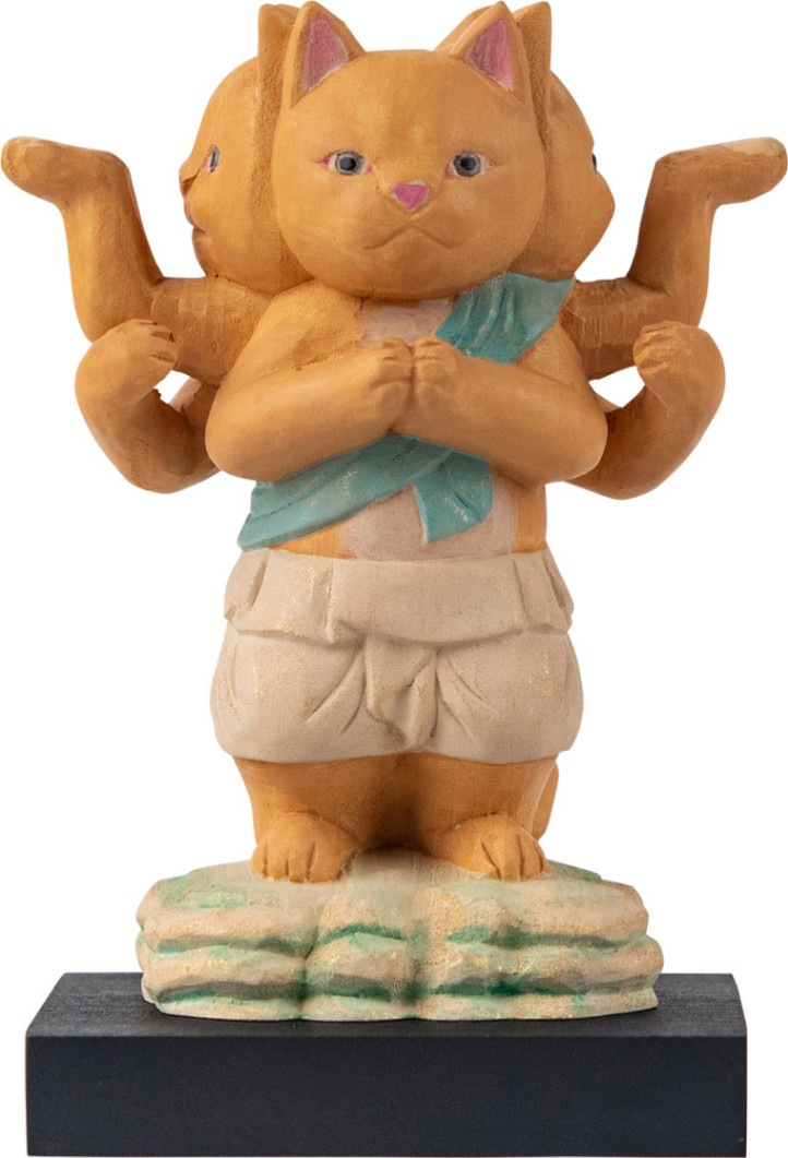 木彫りの弥勒猫 淡彩色 猫仏さま