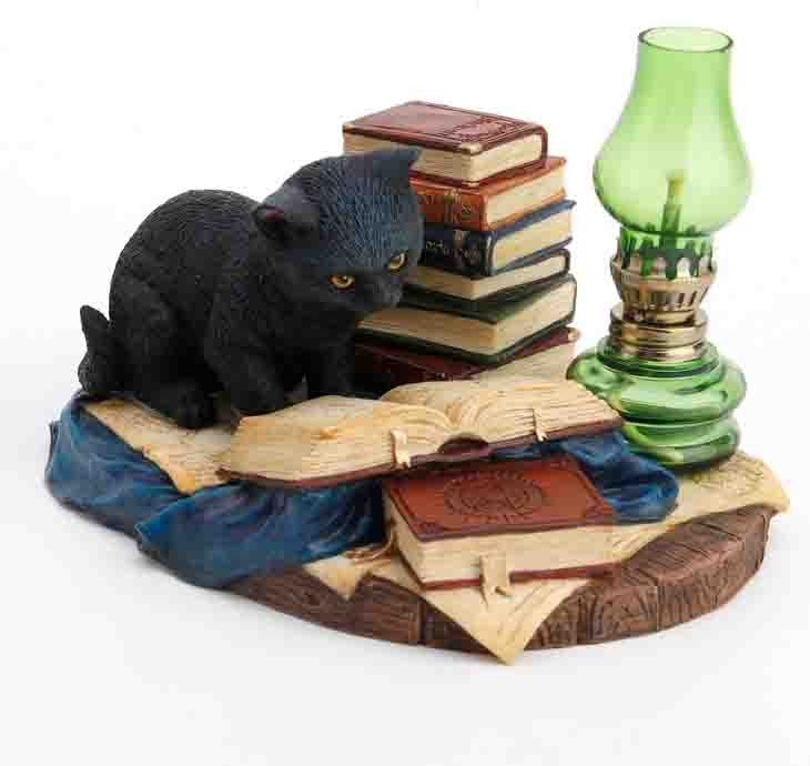 ヴェロネーゼ製凶暴な魔法猫ネコ彫像マジシャンオイルランプねこ置物彫刻キャットフィギュア輸入品