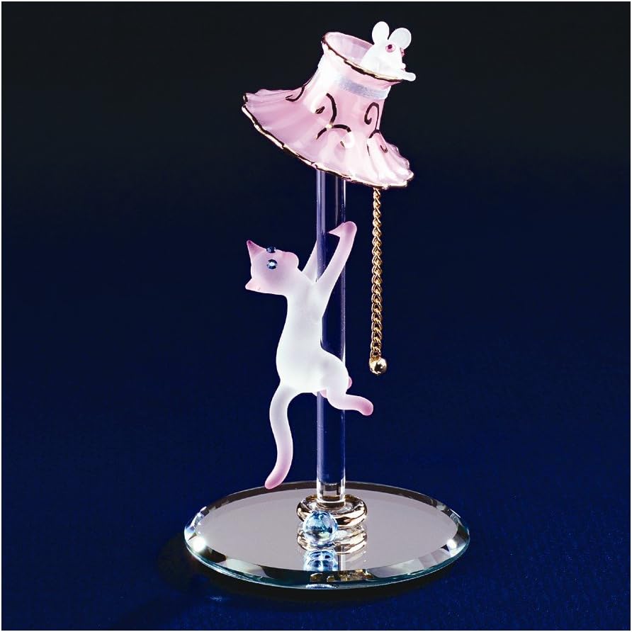 グラスブラウン製ランプとネコ子猫ねこ彫像動物コレクションガラス製ミニチュア高さ約10.2cm置物フィギュア輸入品