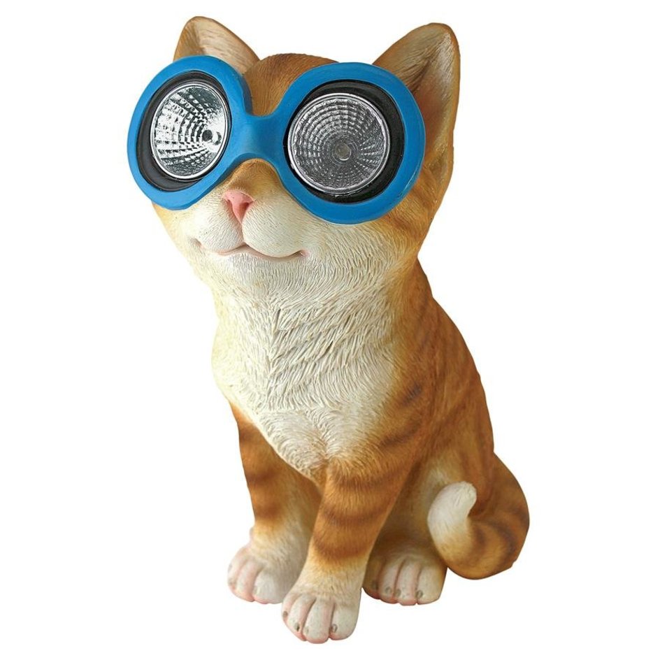 ブライトアイズソーラーキャットガーデン彫像ソーラーライトの眼を持った子猫ちゃん置物彫刻アート工芸玄関芝生贈物輸入品