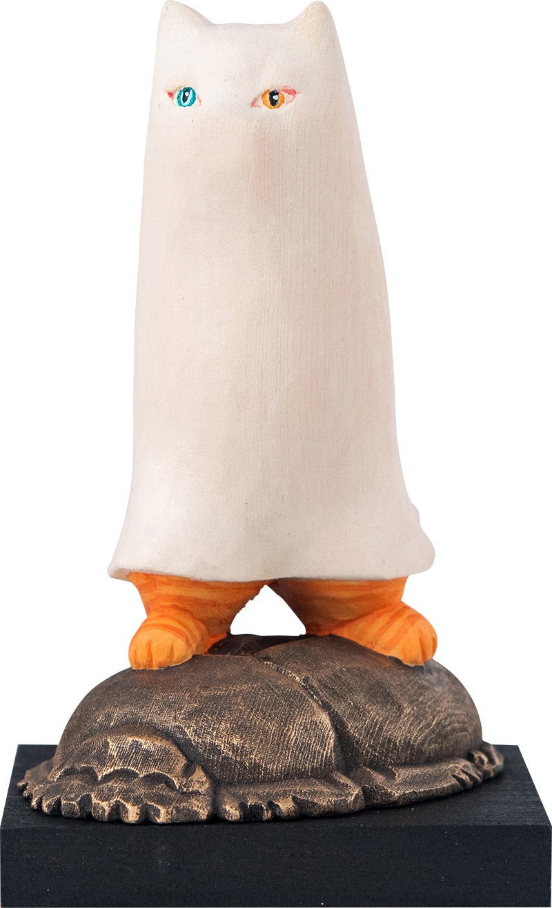 真鍋千恵子 ペーパーウェイト(月守の猫 /C)九谷焼