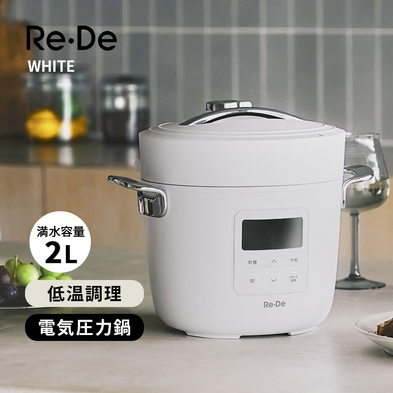 [EPC01A-20WT] Re・De Pot 電気圧力鍋 2L ホワイト レシピブック付き 炊飯器 圧力調理 低温調理 保温★