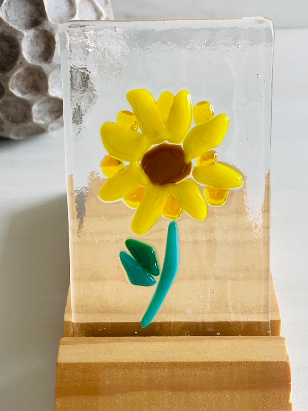 IT-F2 ガラス作家「福岡ひろみ」 1点もの ひまわり オブジェ(送料込み)