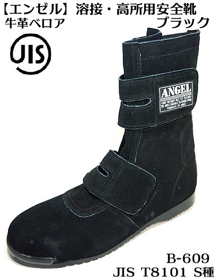 【 エンゼル】B 609【ブラック】 ベロア 溶接用 高所作業用 安全靴 マジックタイプ 【JIS規格 ANGEL】(エンゼル安全...