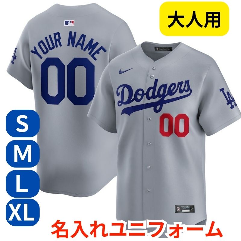 名入れ ドジャースユニフォーム Nike ナイキ 大人用 オリジナルユニフォーム Los Angeles Dodgers ★グレー...