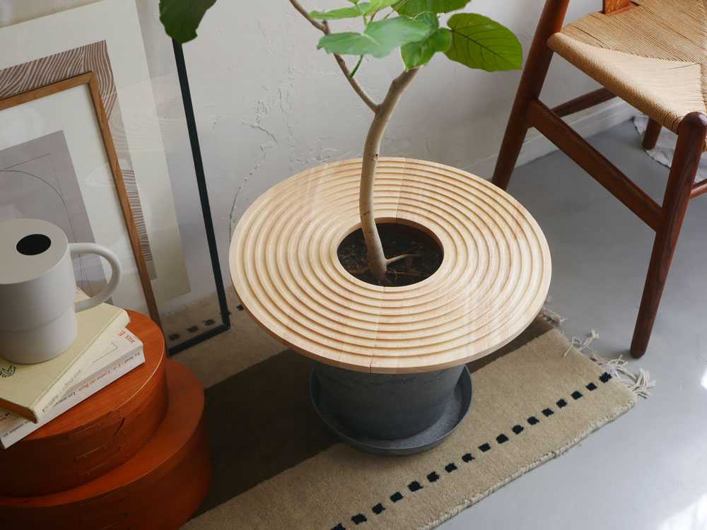 【amabro/アマブロ】土が隠せるウッドプラントテーブル サークル Lサイズ / ナチュラル