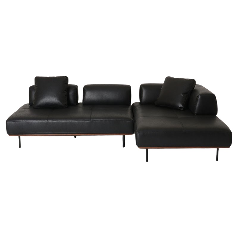 3人掛けカウチソファ(布地)6色展開 ヘッドレスト、クッション各2個付き|Lunion-ラニオン- HC3P-BK ブラック