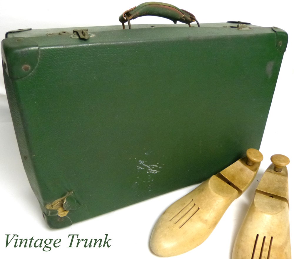 【訳あり】ヴィンテージ トランク / オールドスーツケース (緑 )【中古】