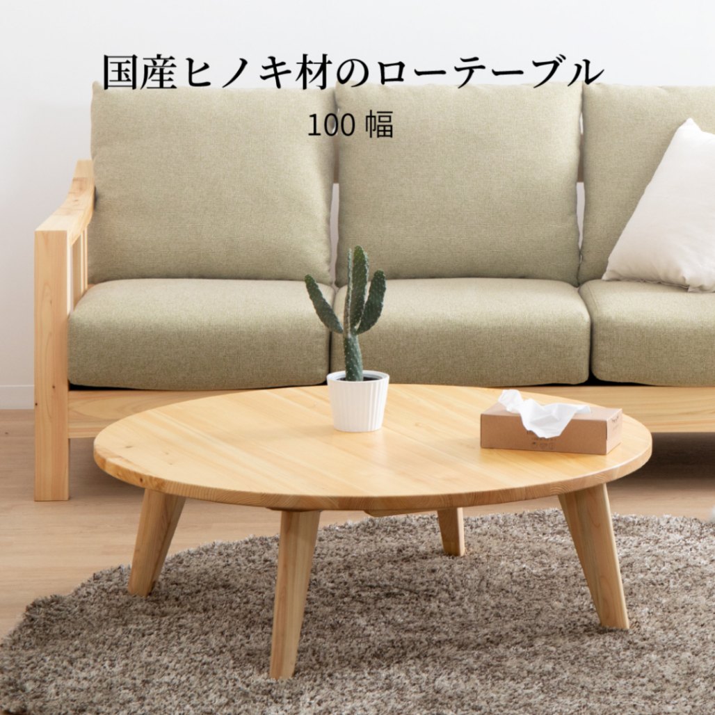 [幅100] MY | ヒノキ 無垢天板 丸テーブル リビングテーブル ローテーブル センターテーブル 【在庫限り品】