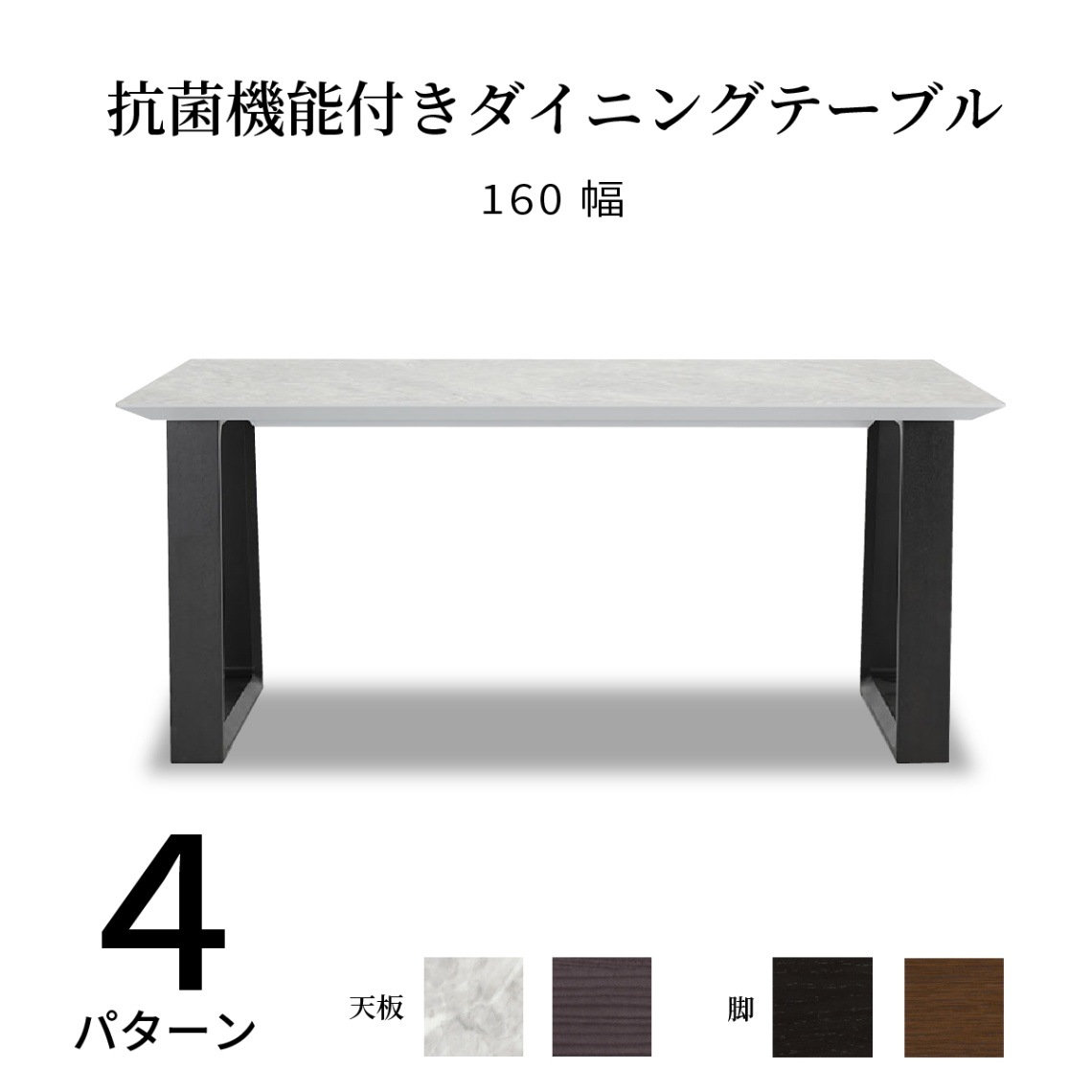 [幅160] メラミン ダイニングテーブル 4人掛け USB コンセント付き 二本脚 抗ウイルス ウイルテクト 白 大理石調 ...
