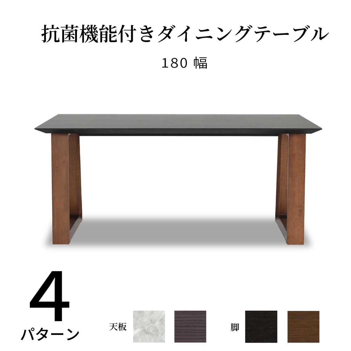 [幅180] メラミン ダイニングテーブル 4人掛け USB コンセント付き 二本脚 抗ウイルス ウイルテクト 白 大理石調 黒木...